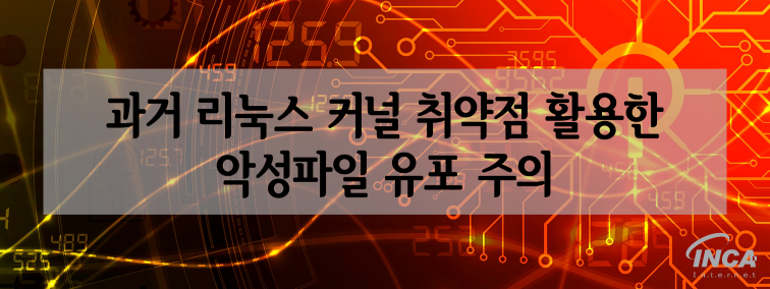 최근 리눅스 커널의 취약점을 이용하여 관리자 권한을 탈취하는 Dirty Cow 취약점(CVE-2016-5195)을 사용한 악성 파일이 유포되고 있다. 해당 샘플에 감염될 시 가상화폐 채굴기로 이용될 뿐만 아니라 감염 PC 의 통신 기록을 참고하여 감염 대상을 늘리는 기능이 있기 때문에 주의가 필요하다.