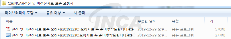 | 파일명 | 전산 및 비전산자료 보존 요청서(20191230)요청자료 꼭 준비부탁드립니다.exe |