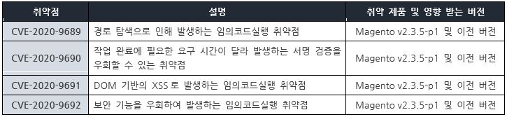 Adobe사에서 Magento 제품 보안 업데이트를 발표하고, 관련 취약점을 해결하기 위해 최신 버전으로 업데이트할 것을 권고하였다.