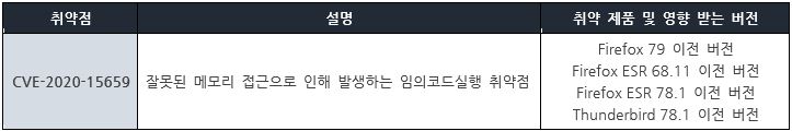 Mozilla 재단에서 Firefox 제품의 보안 업데이트를 발표하고, 관련 취약점을 해결하기 위해 최신 버전으로 업데이트할 것을 권고하였다.