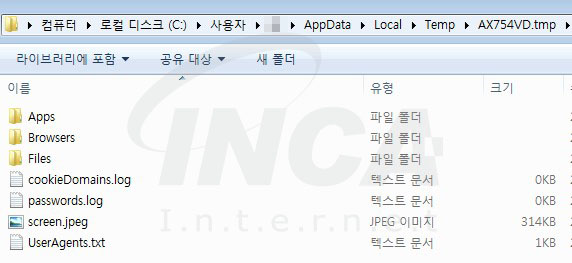 Anubis Stealer는 사용자 PC에 대한 정보를 비롯한 브라우저 정보 등을 탈취하여 ‘AX7574VD.tmp’ 디렉토리에 저장한다.