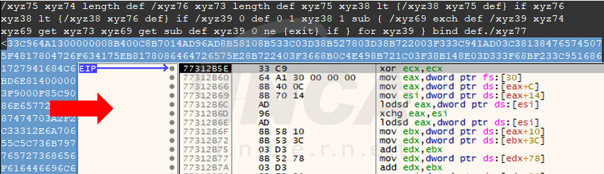 EPS 내부 스크립트가 실행되면 취약점을 통해 Shellcode가 실행된다.