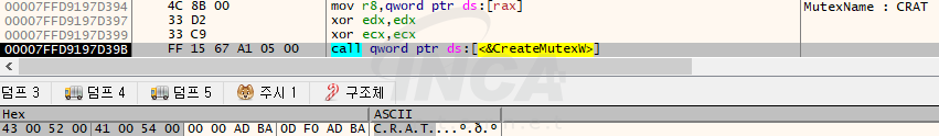 또한 중복 실행 방지를 위해 생성하는 뮤텍스 이름을 "CRAT"으로 사용하는 특징을 가지고 있다.