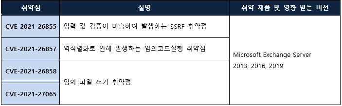최근 HAFNIUM APT 그룹이 Microsoft 제품의 취약점을 이용한 사이버 공격이 발견되어 이슈가 되었다. Microsoft는 Exchange Server에서 발생하는 취약점에 대한 보안 업데이트를 발표하고, 최신 버전 업데이트를 권고하였다.