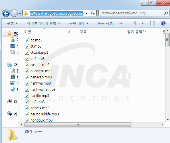 또한 악성 앱의 asset 폴더 내부에는 다수의 금융기관, 보험사를 사칭하는 ARS 파일이 존재하며, 이를 이용하여 피해자의 통화 화면 대신 가짜 통화 화면과 ARS 음성을 출력하여 피싱을 시도할 수 있다.