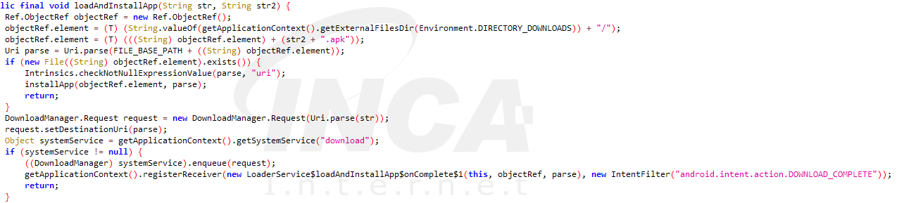 사용자에게 들키지 않도록, 미디어에 보이지 않게 응용 프로그램 내부에 apk 파일을 다운로드한다.