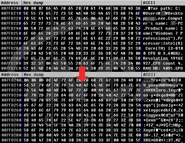 수집한 정보는 다음과 같이 XOR로 인코딩하여 공격자의 서버로 전송한다.