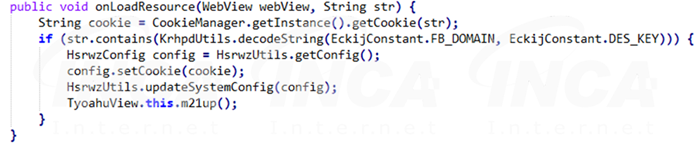 위의 그림과 같이, 해당 악성 앱은 안드로이드용 Facebook SDK를 통해 AccessToken을 획득하고, 정상적으로 Redirection 받아와 사용자 단말기에 Facebook 로그인 화면을 띄운다.