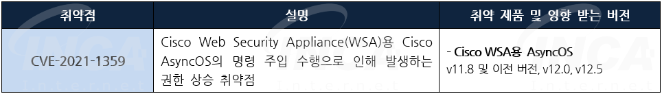 Cisco 사는 제품에서 발생하는 취약점에 대한 보안 업데이트를 발표하고, 관련 취약점을 해결하기 위해 최신 버전으로 업데이트할 것을 권고하였다.