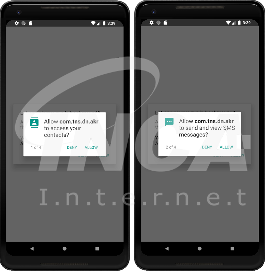 Chinotto 스파이웨어를 실행하면 하단 좌측의 이미지에서 보는 것과 같이, 악성 동작을 하기 위해 각종 권한을 획득한다.
