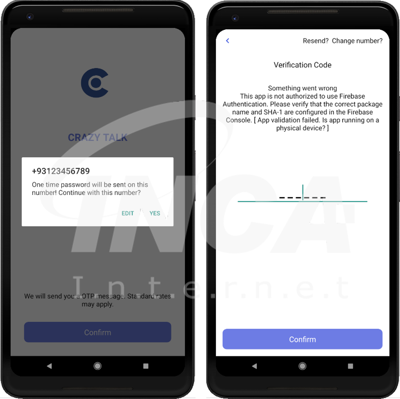 앱을 실행하면, 아래의 그림과 같이 전화번호 인증을 요구한다. 사용자가 입력한 번호가 정상적인 번호인지 OTP번호를 통해 확인한다.