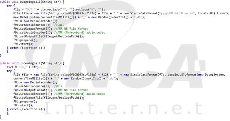 단말기에 새로운 발신 전화가 발생하면, 음성 통화의 소스를 DB에 저장한다. 그리고 수신 전화가 발생하면, 단말기의 마이크에 수집되는 정보를 저장한다.