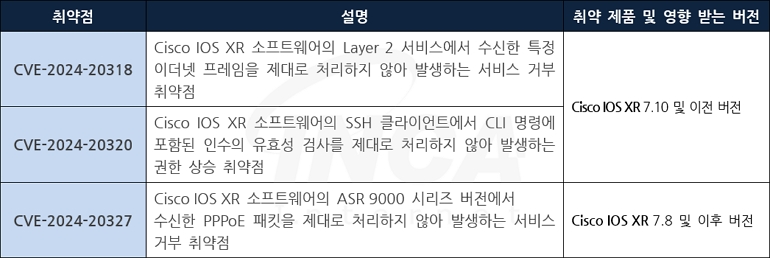 | Cisco 제품 보안 업데이트 권고 (0) | 2024.04.19 |